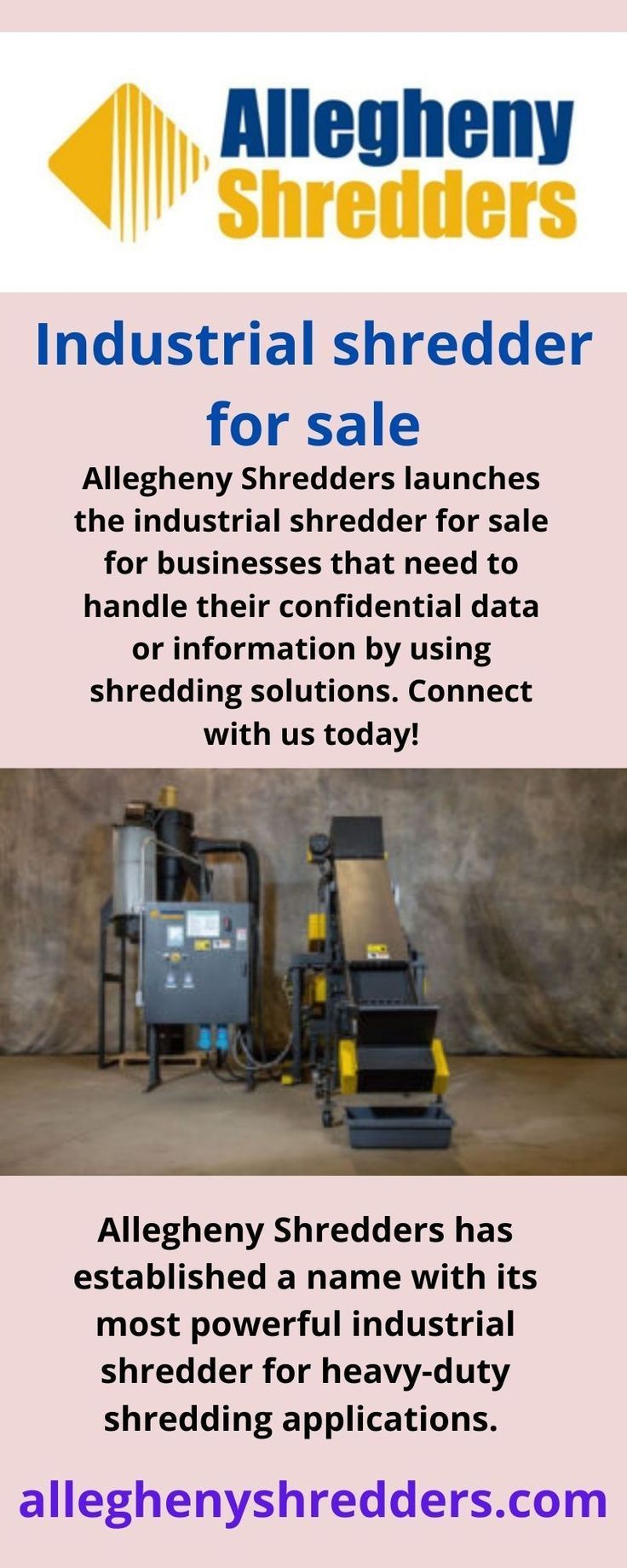 Allegheny Shredders launches the industrial shredder for sale for businesses that need to handle their confidential data or information by using shredding solutions. Connect with us today!